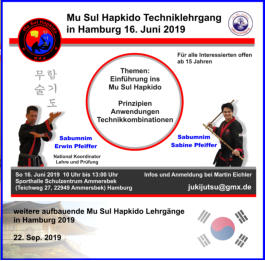 Hamburg um am 15. - 16.6. einen Lehrgang im Mu Sul Hapkido zu gehen.